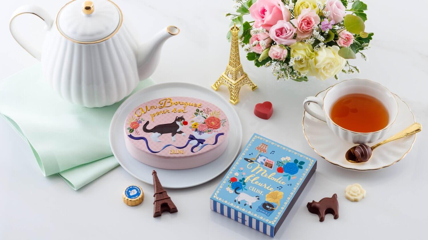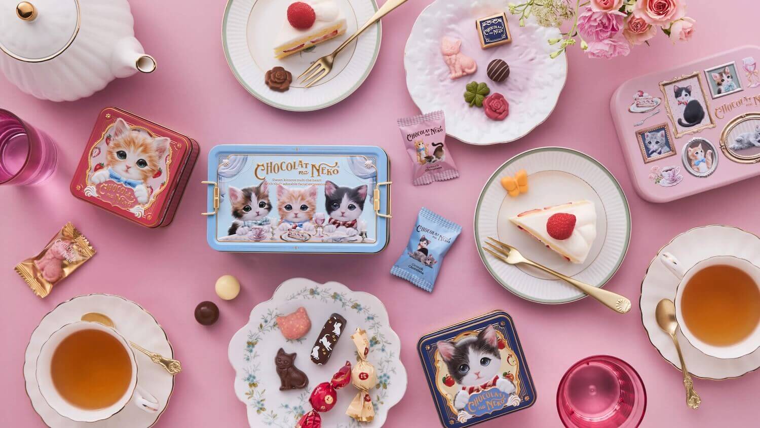 かわいらしい猫のパッケージに、猫のプリントチョコレートや猫型のチョコレートの詰め合わせです。